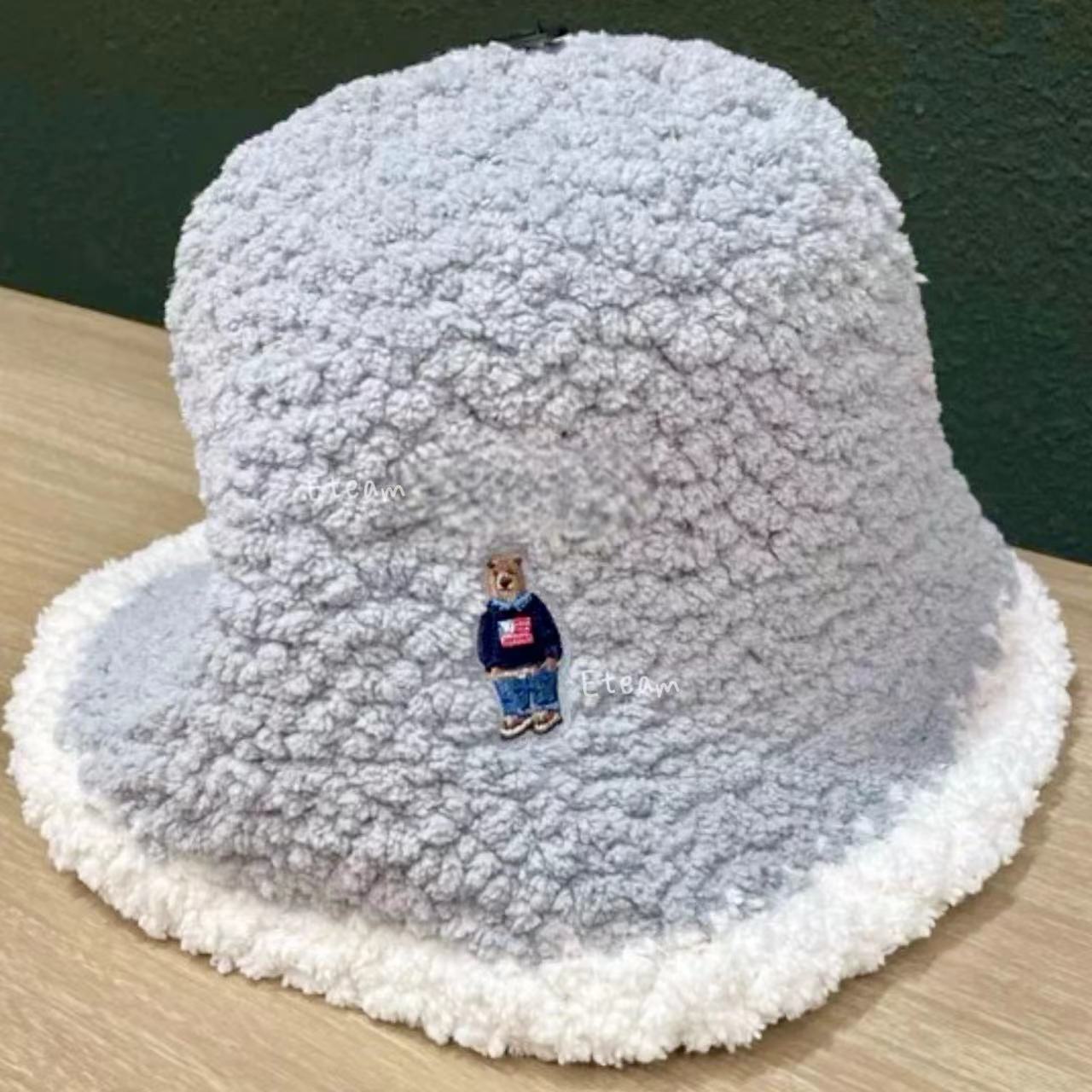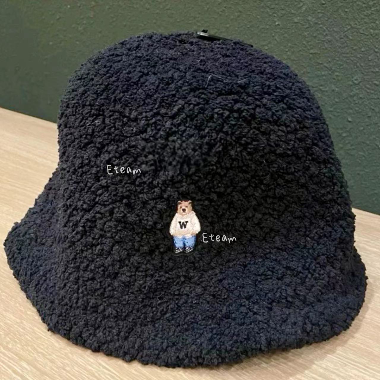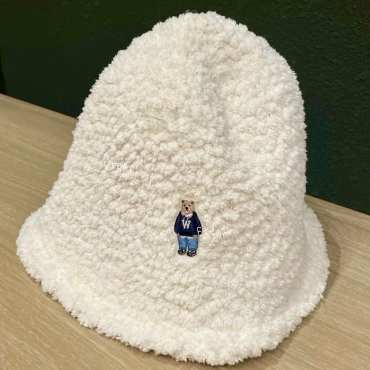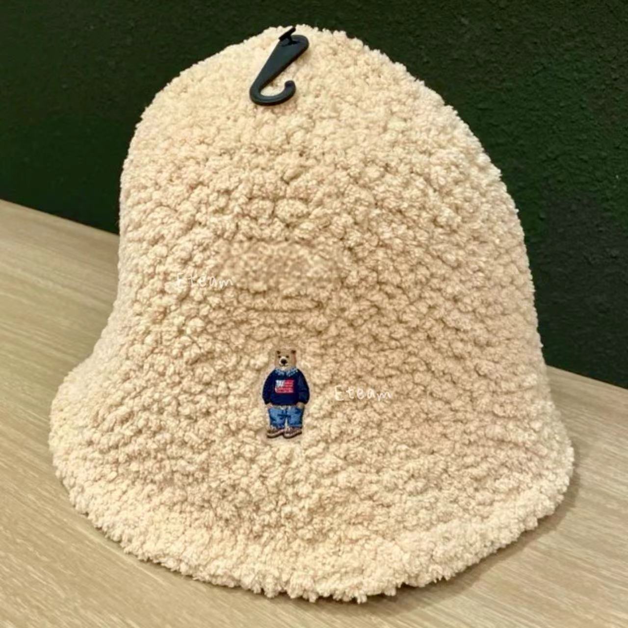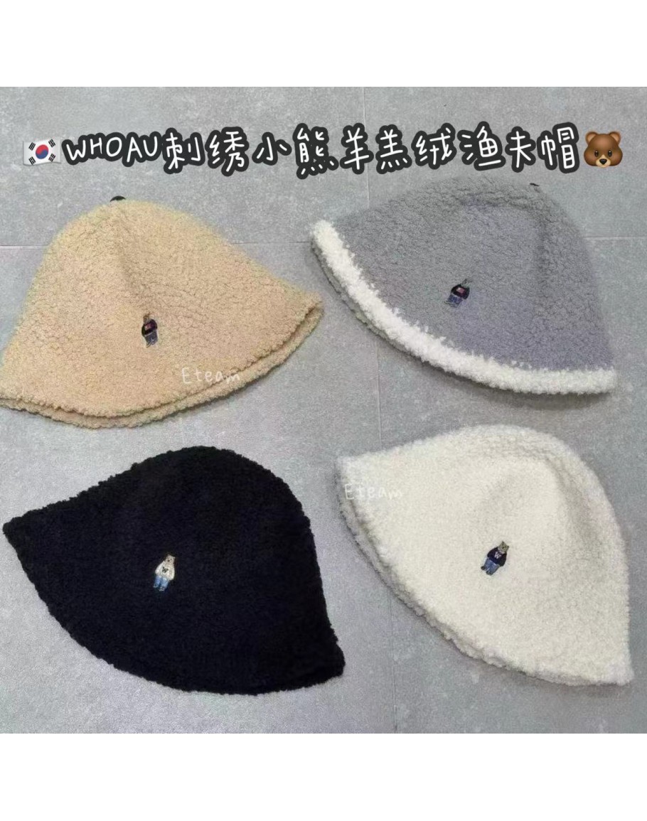 【代购】WHOAU 刺绣小熊羊羔绒渔夫帽