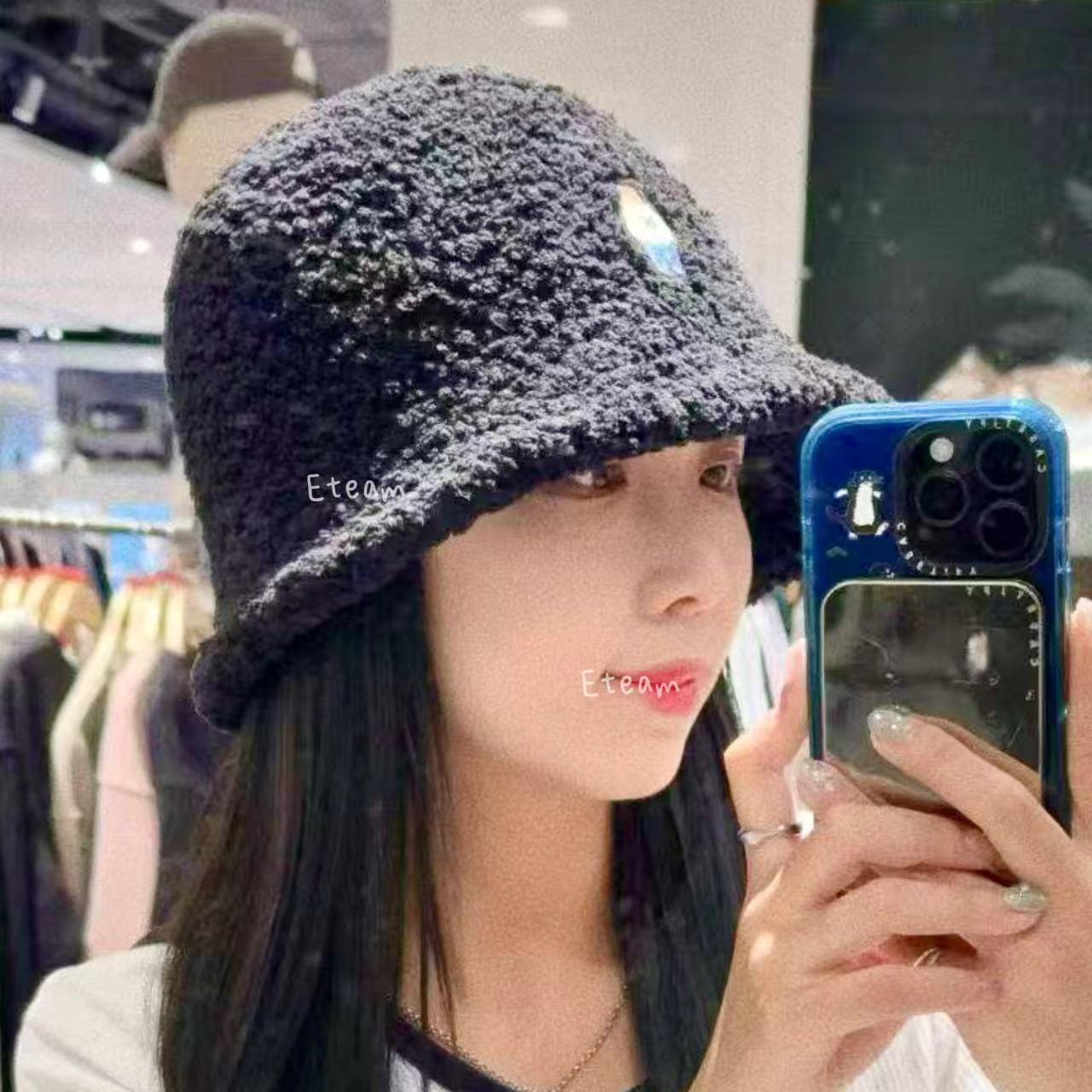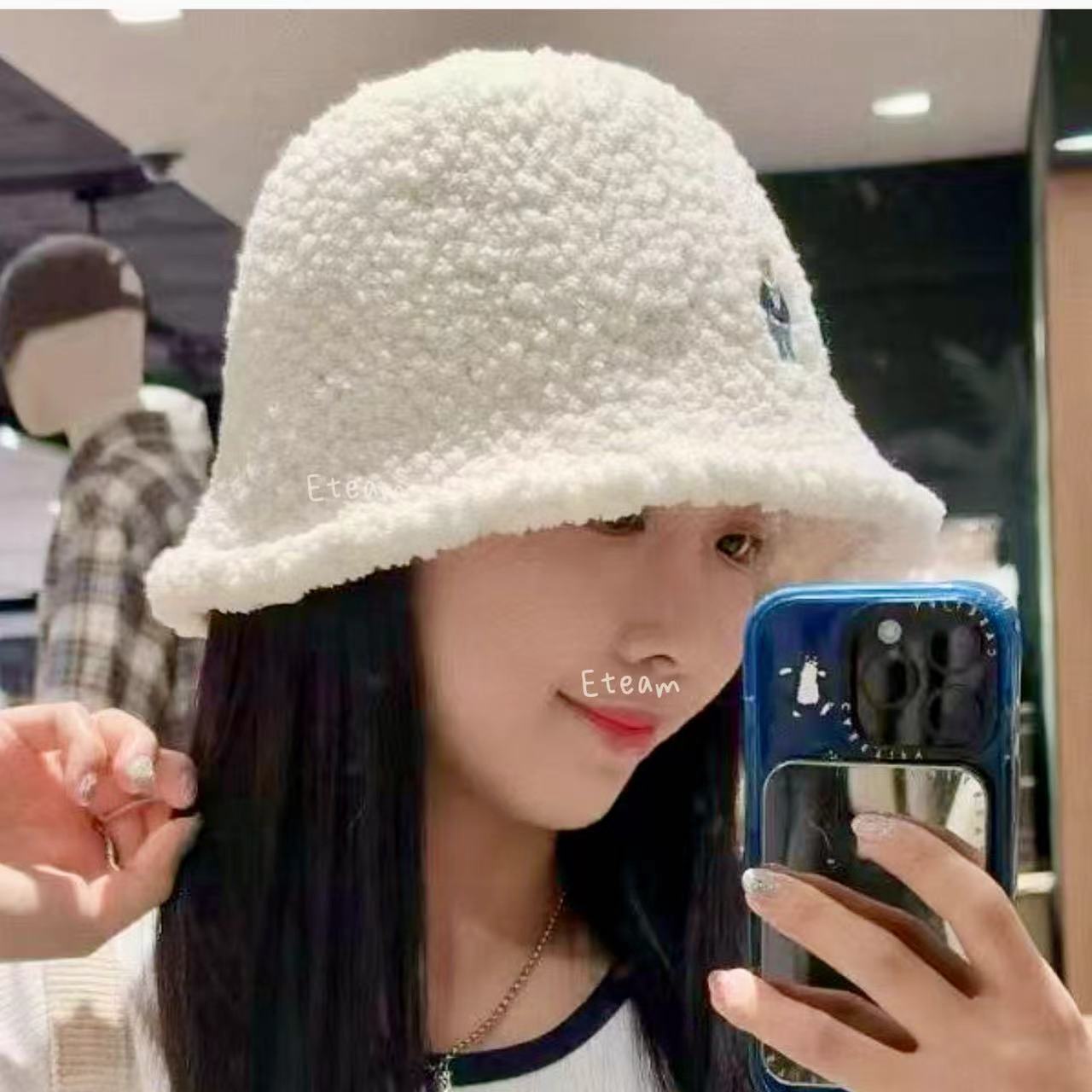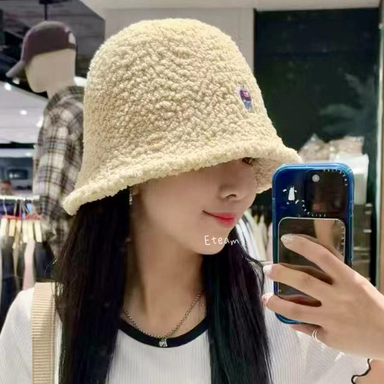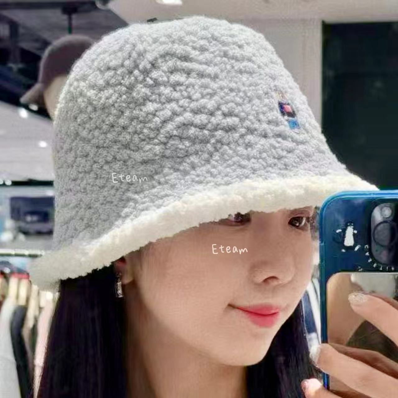 【代购】WHOAU 刺绣小熊羊羔绒渔夫帽