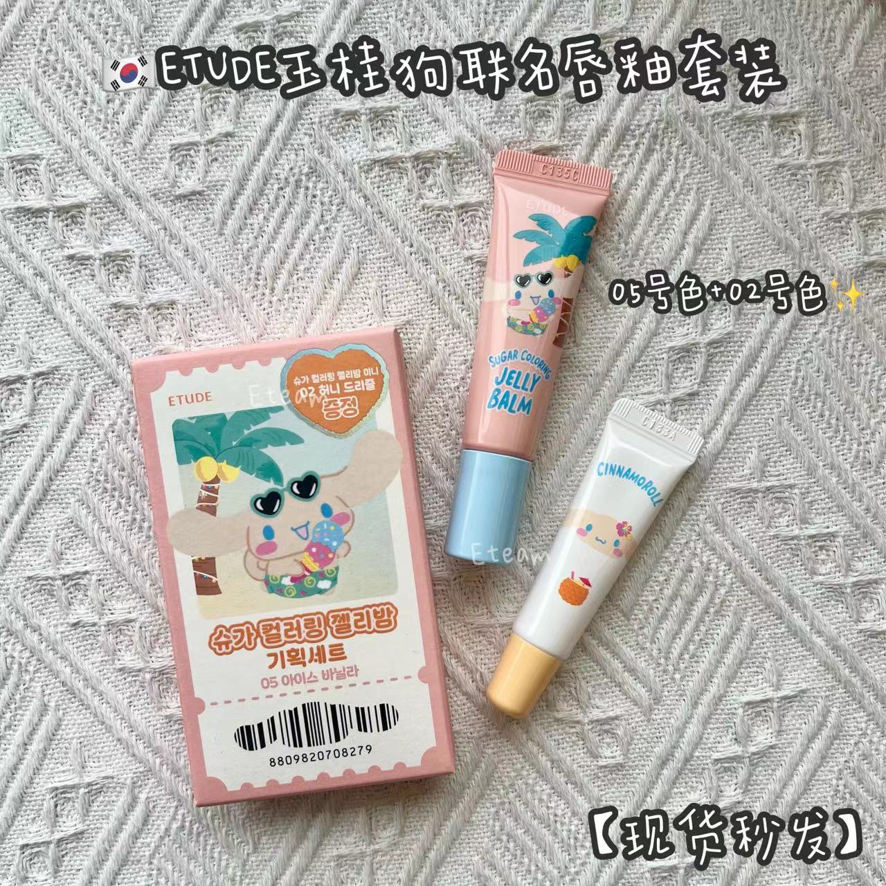 -爱丽小屋×三丽鸥玉桂狗限定唇釉套装,包含05冰香草唇釉+润唇膏,包装超萌,玉桂狗沙滩风设计,夏日氛围感拉满。唇釉是淡橘粉+蜂蜜细闪,伪素颜提气色,通勤日常都OK;润唇膏滋润双唇,元气感满满。小巧便携,随时补妆超方便~